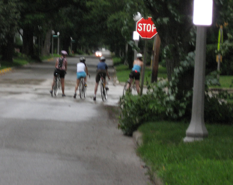 As I headed for home on Oregon, these riders went by. I didn't wait for traffic. People ride their bikes in Urbana, day and night (note flashers & headlights). How about making it a little safer?